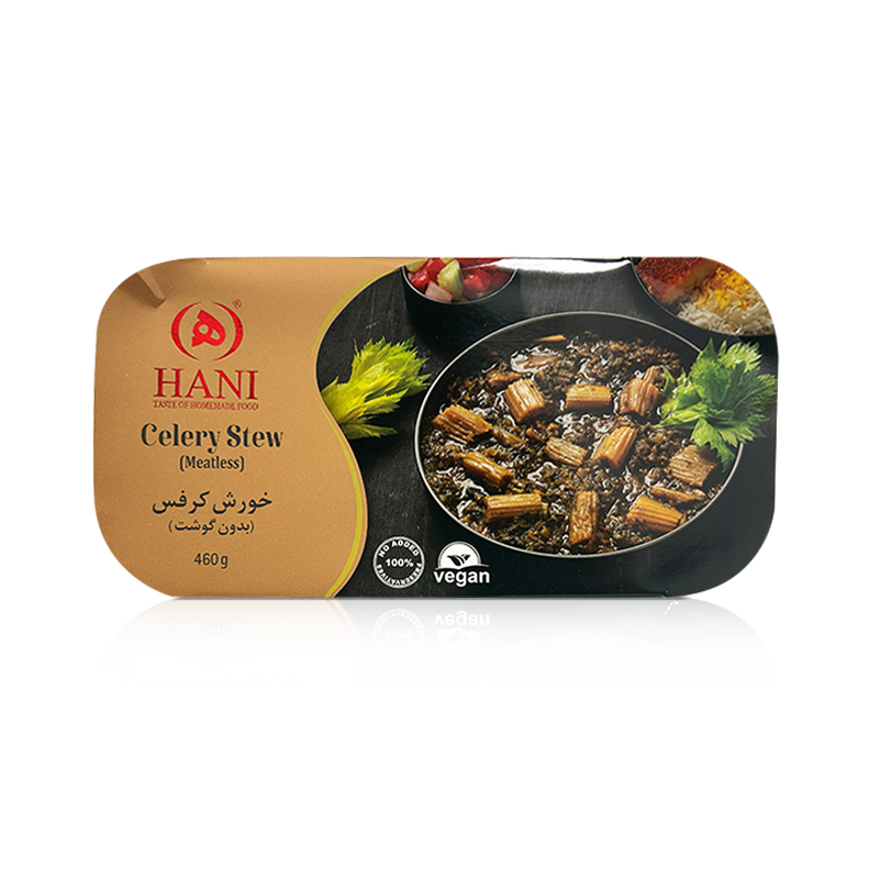 Hani Khoresh Karafs is a ready-to-eat version of the traditional Persian celery stew, made with tender celery, fragrant herbs such as parsley and mint, and savory seasonings. This flavorful and comforting dish reflects the authentic taste of Iranian home cooking and is typically served warm with Persian saffron rice for a satisfying meal.